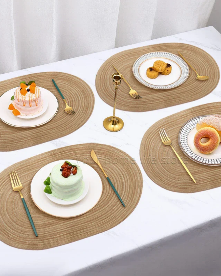 1/4/6pcs Color Blocking Table Leather Placemats,Washable for Dining,Heat-Resistant Non-Slip Insulation Waterproof Place Mats
