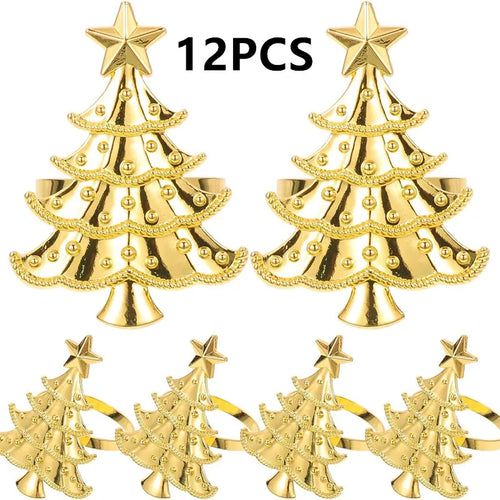 1/12PCS Christmas tree napkin ring, metal creative napkin buckle,silver gold mouth cloth circle, hotel table decoration supplies