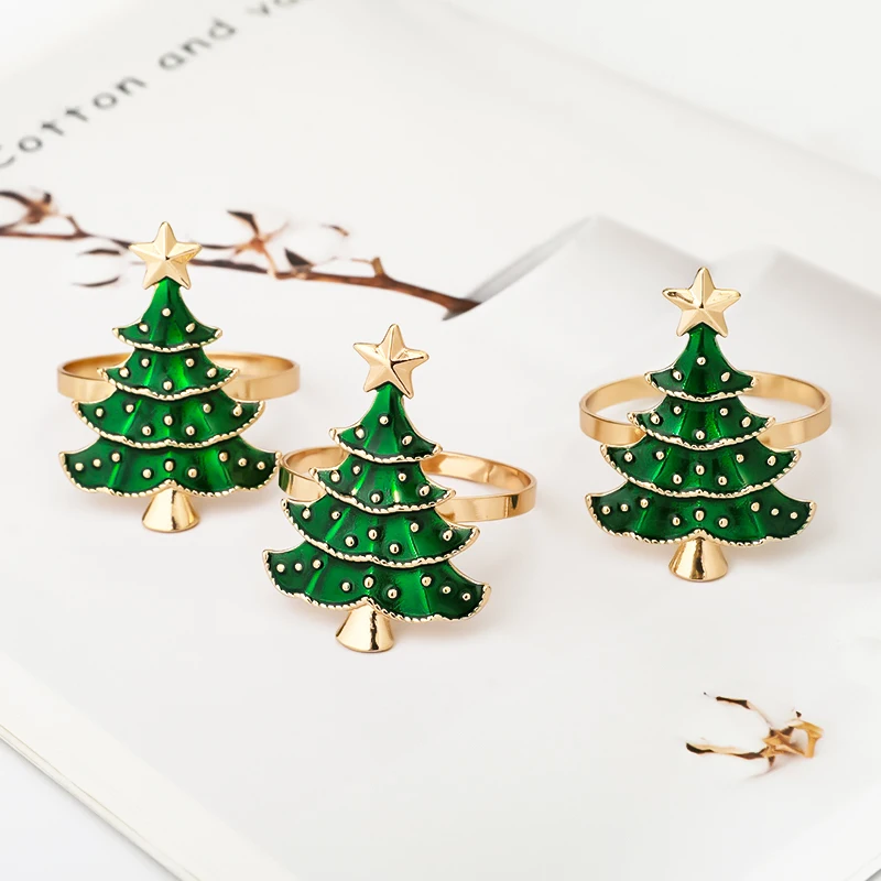 1/6Pcs Christmas Napkin Rings Xmas Tree Ornaments 2025 Christmas Home Kitchen Dinner Table Decoration New Year Party Supplies