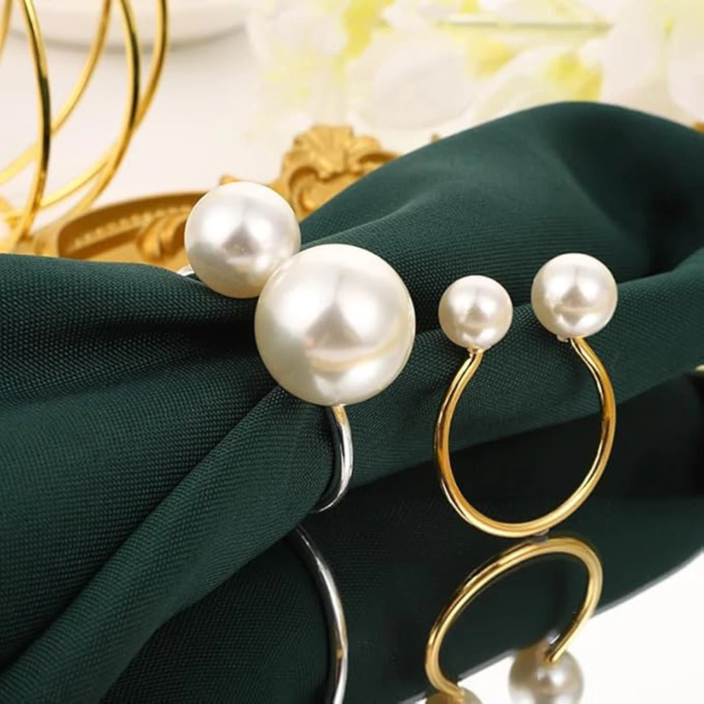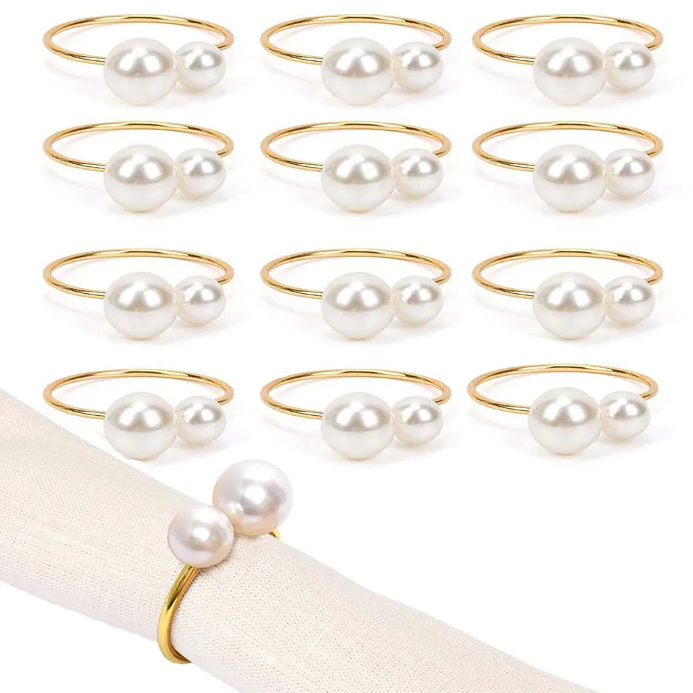 12PCS Pearl Napkin Rings Set Gold Napkin Ring Holders Serviette Ring Buckle for Wedding Birthday Banquet Party Table Supplies