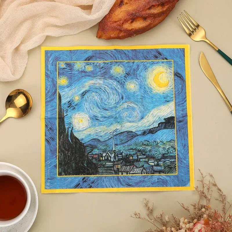 20pcs 25cm 3Layer Blue Starry Night Printed Napkins Birthday Party Disposable Atmosphere Paper DIY Decoupage Paper