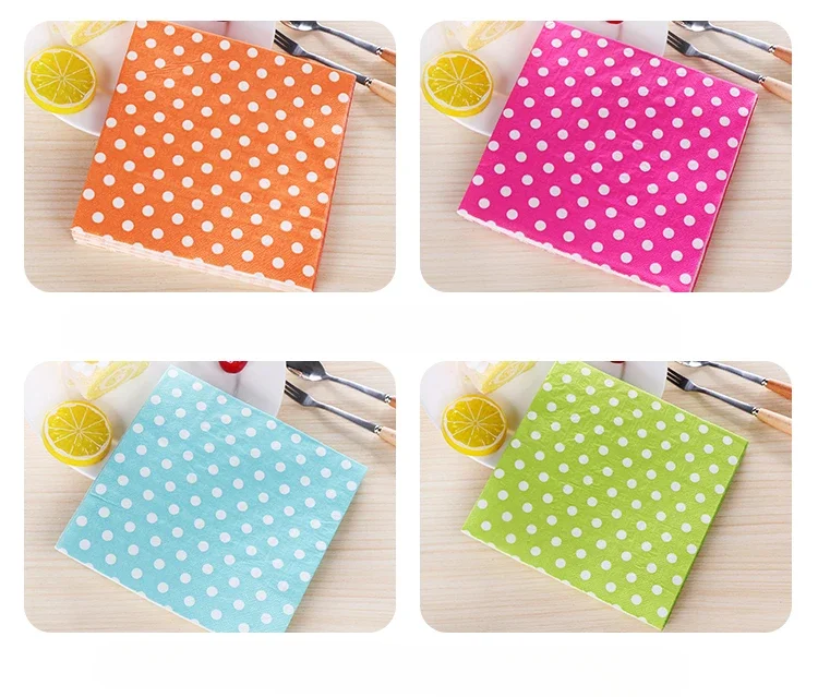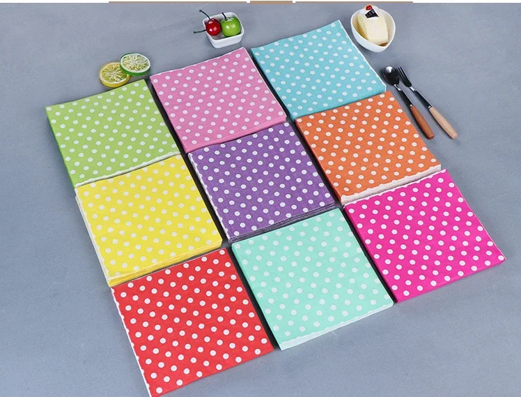 20pcs/Pac 33*33cm 2-Ply Custom Colourful Printed Napkins New Six Colour Polka Dot Folded Napkins All Party Napkins Placemats