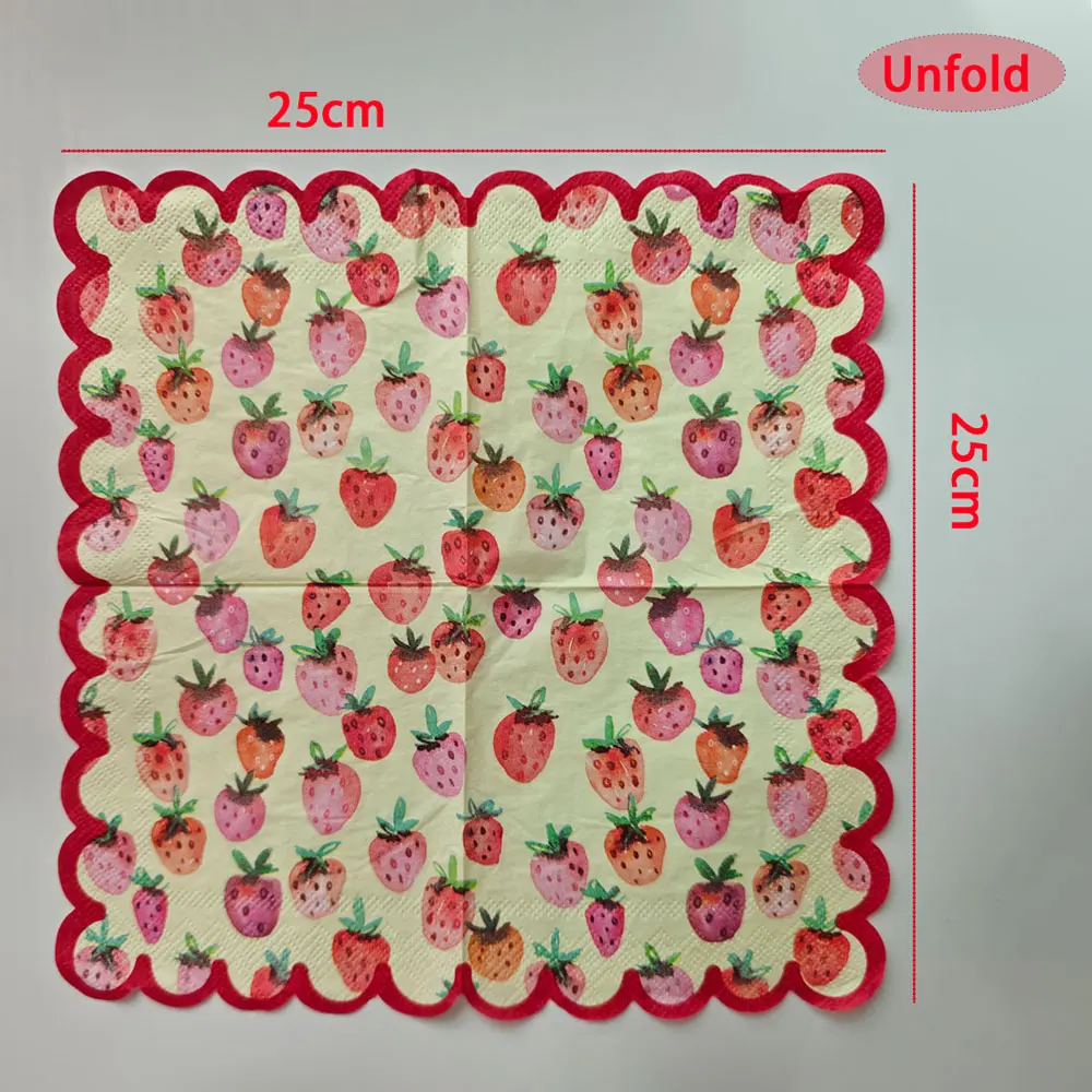 40pcs 25*25cm 3-Ply Red Strawberry Printed Cut Edge Cocktail Napkins Bar Party Paper Wavy Edge Printed Paper Placemats,Suitable