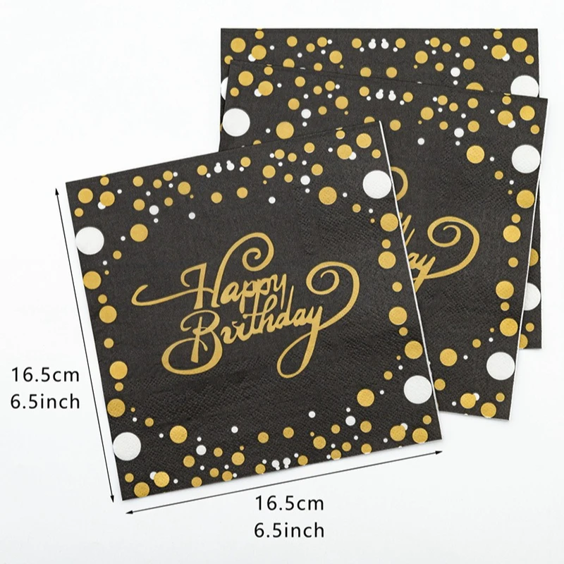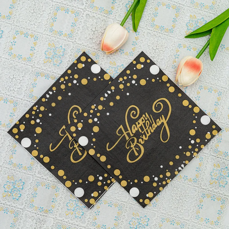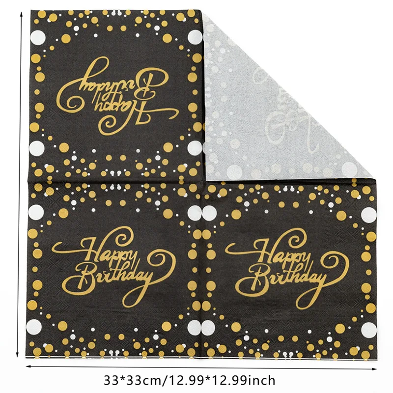 Birthday Party Colorful Printing Napkins Square Paper Napkins Gold Lettering on Black Background Paper Placemats 20/40pcs