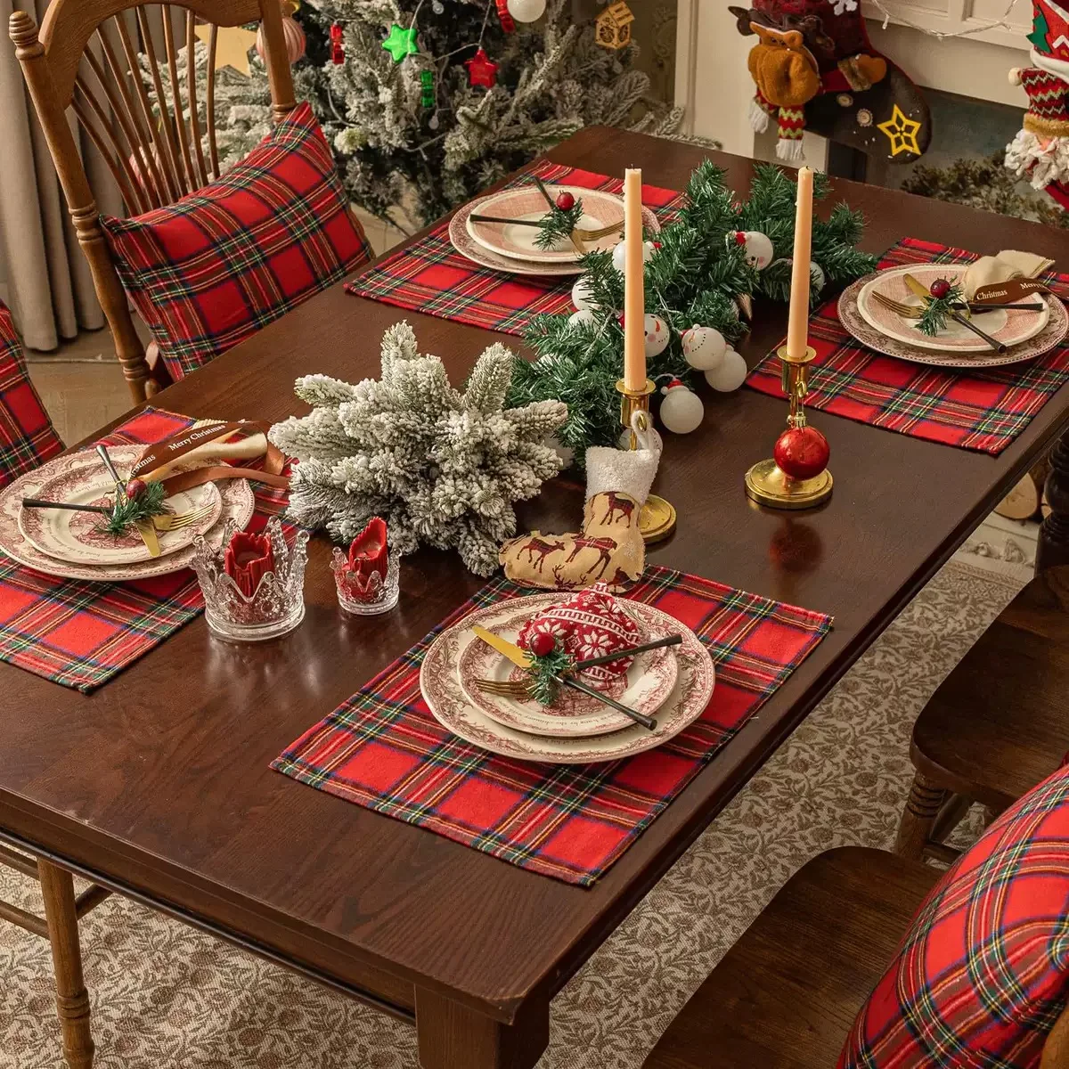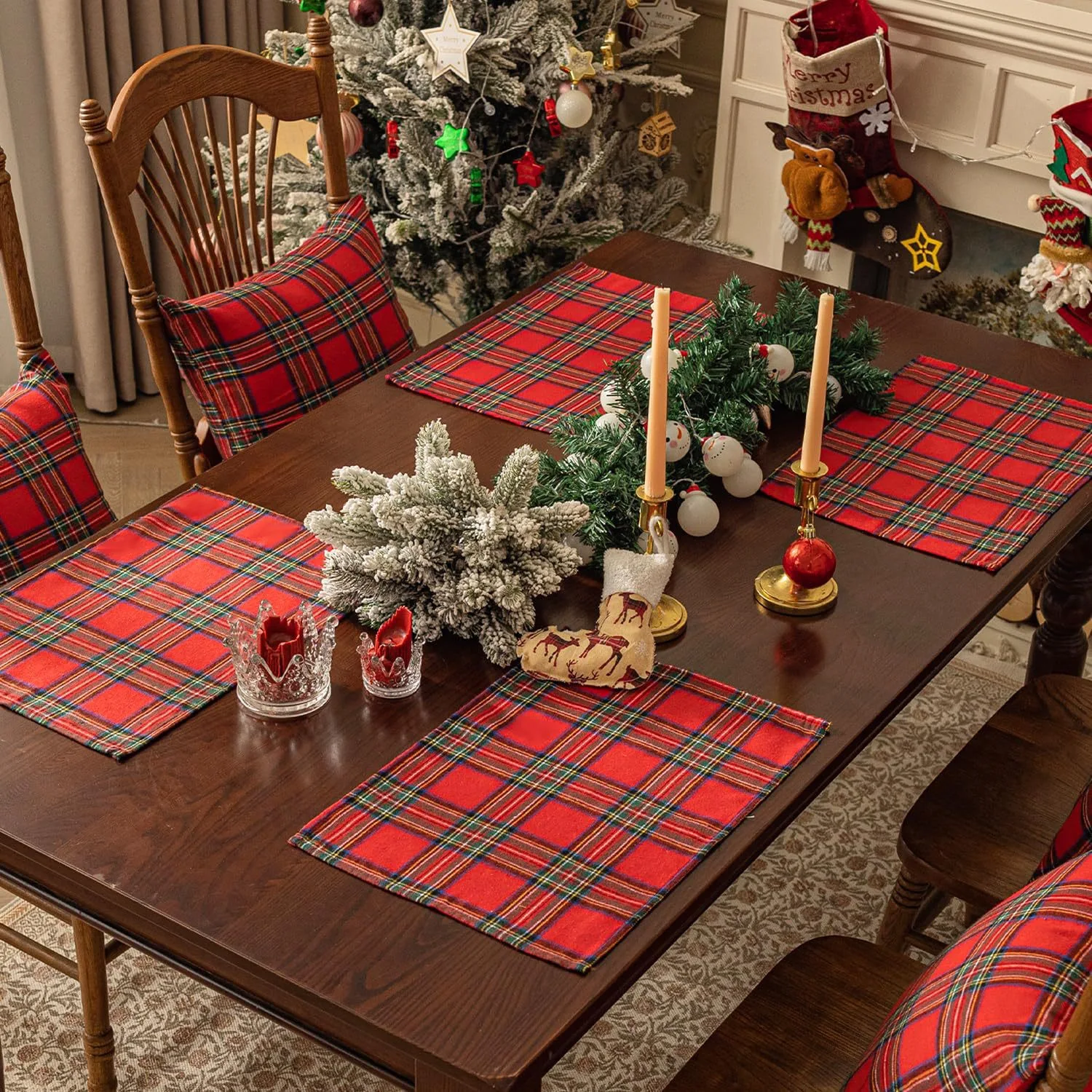 Christmas Red Plaid Napkins Retro Checkered Napkins for Holiday Dinner Party Dining Festive Decor Dropshipping