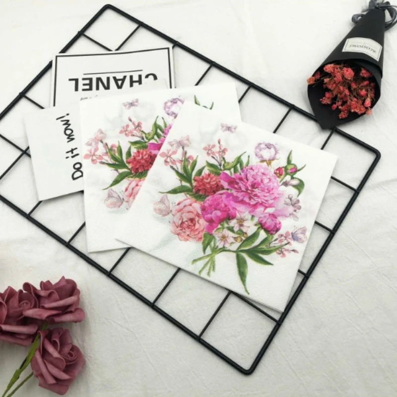 Colourful Napkins Printed Square Paper Napkins Restaurant Floral Facial Tissue Hotel Wedding Table Setting Pure Wood Pulp Paper