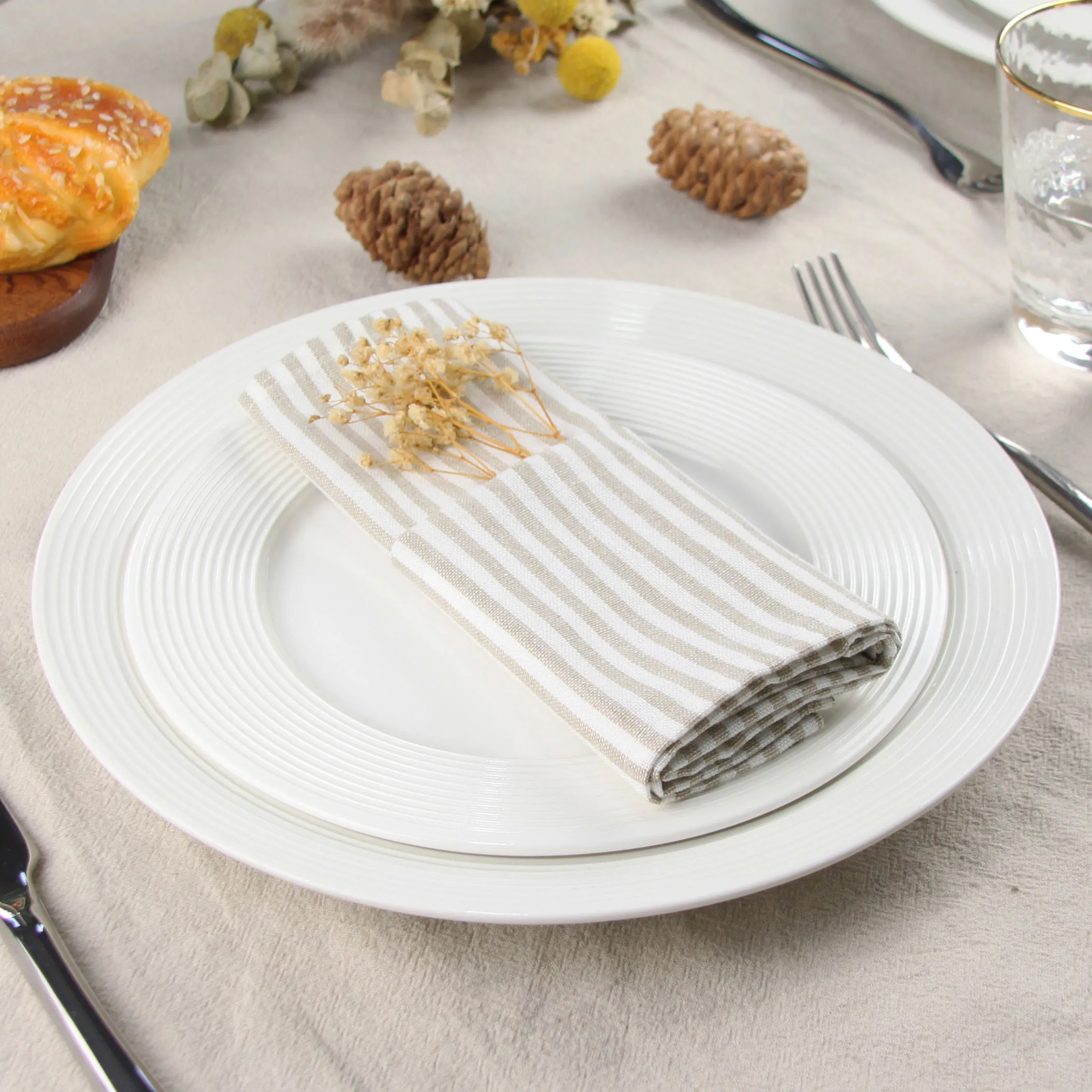 Plain Striped Linen Cotton Blended Dinner Cloth Napkins Placemats Tea Towels Set of 12 (40 x 30 cm) for Events & Home Use