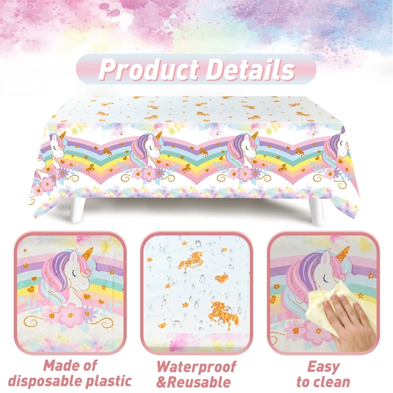 Rainbow Unicorn PE Tablecloth Happy Unicorn Theme Birthday Party Decorations Kids Favors Table Cover Girls Baby Shower Supplies