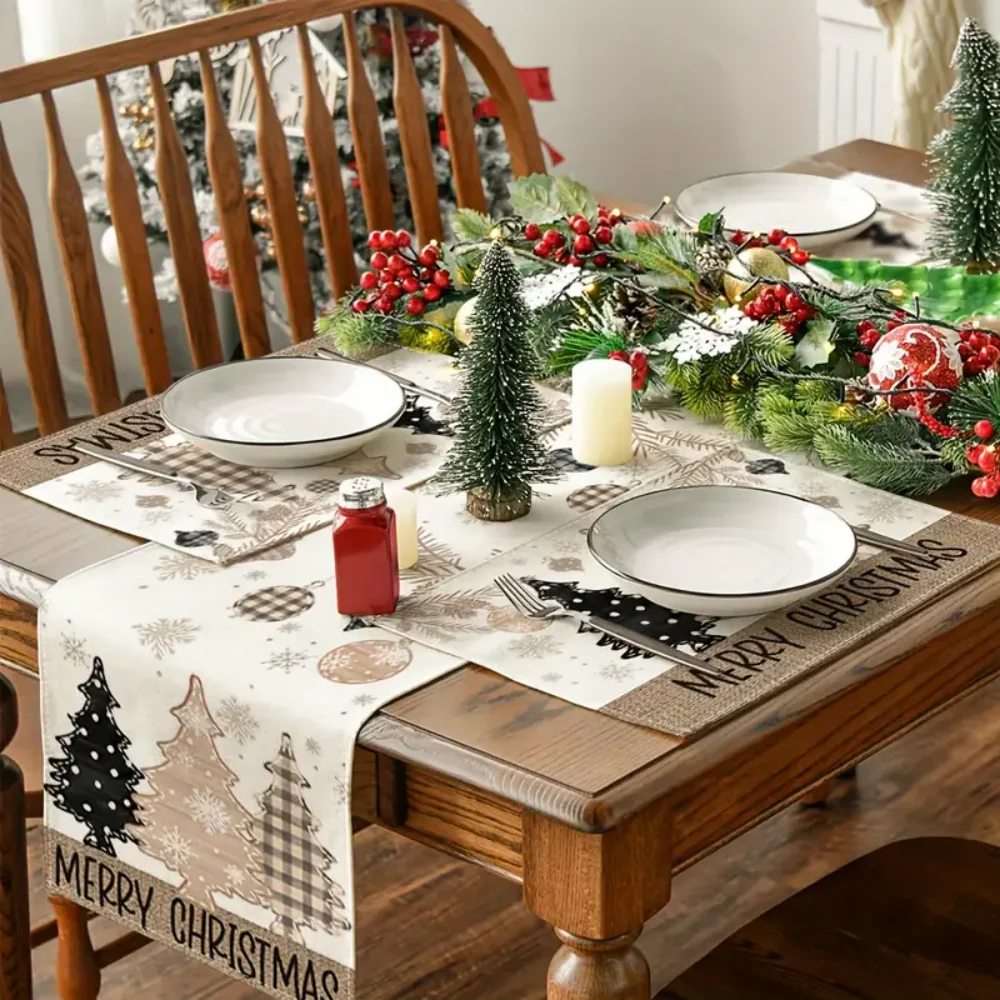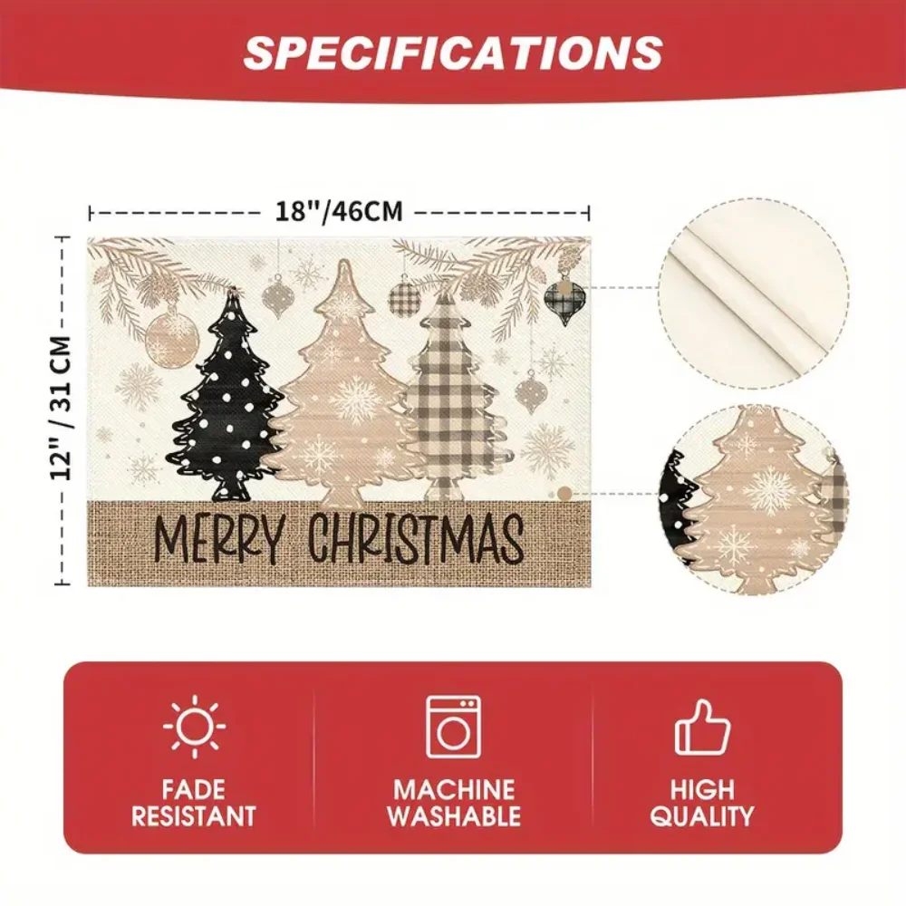 VIKAMA Linen Placemat with Christmas Element Printing Dirt Resistant Tabletop Placemat Suitable Party Kitchen and Restaurant